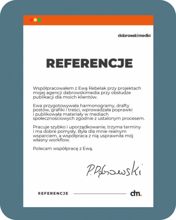 Najlepiej o mojej pracy mówią osoby, z którymi miałam okazję współpracować. To właściciele małych i lokalnych firm, eksperci i przedsiębiorcy, którzy chcieli, aby ich działania marketingowe w końcu były spójne i dopasowane do ich biznesu.