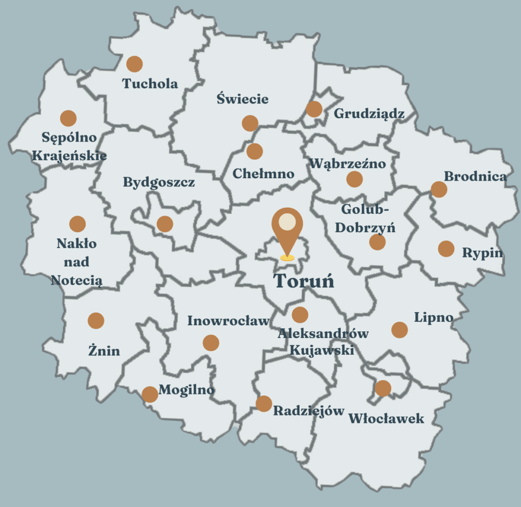 Działam stacjonarnie na terenie Torunia oraz województwa kujawsko-pomorskiego, dzięki czemu dobrze znam specyfikę lokalnego rynku, potrzeby przedsiębiorców i realia prowadzenia biznesu w regionie.