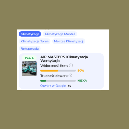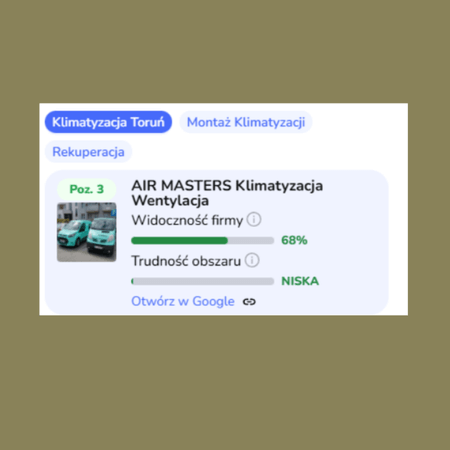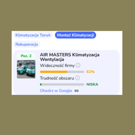 Profil wyświetla się w TOP3 na wszystkie frazy w obsłudze.